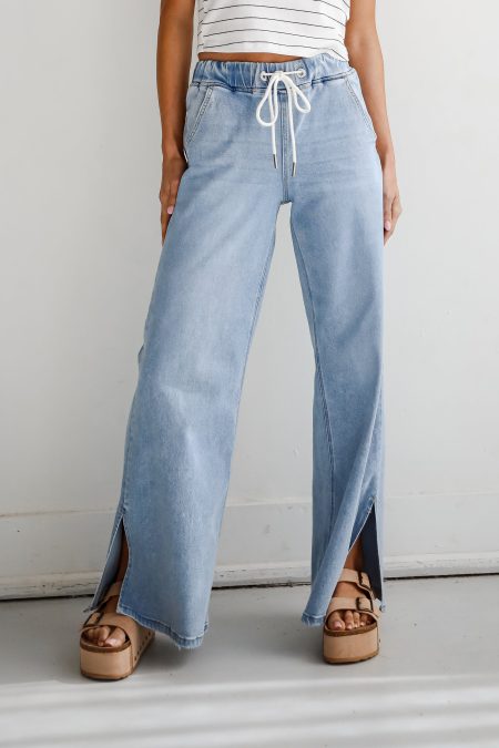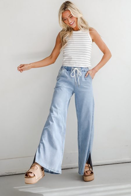 Step into a fresh, contemporary look with the Hadley Light Wash Super High-Rise Wide Leg Distressed Jeans! Designed for those who appreciate both comfort and trend-setting style, these jeans are crafted from premium denim with just the right amount of stretch to ensure a flattering and flexible fit. The light wash offers a breezy, relaxed vibe that’s perfect for warmer months, while the high-rise waistband accentuates your waist and creates a smooth, streamlined silhouette. The wide-leg cut adds a touch of retro flair, providing a chic alternative to traditional skinny jeans and allowing for effortless movement and a laid-back, fashionable look. Ideal for casual outings or dressing up for a fun evening, these jeans pair beautifully with everything from a tucked-in blouse and heels to a simple tee and sneakers! Stretchy Light Wash Denim Fabrication High-Rise Button + Hidden Zipper Fly Closure Classic 5-Pocket Cut Belt Loops Distressed Baggy Wide Leg Fit 76.5% Cotton, 23.5% Lyocell Machine Wash Cold Inside Out, Tumble Dry Low Model is 5’6″ and wearing a Size 24.Garment Measurements in Inches:24 | Waist 26” | Hips 30” | Length 38” | Inseam 27”25 | Waist 27” | Hips 30” | Length 39” | Inseam 27”26 | Waist 28” | Hips 30” | Length 40” | Inseam 27”27 | Waist 29” | Hips 32” | Length 41” | Inseam 27.5”28 | Waist 30” | Hips 32” | Length 42” | Inseam 27.5”29 | Waist 31” | Hips 33” | Length 43” | Inseam 28”30 | Waist 32” | Hips 34” | Length 44” | Inseam 28″31 | Waist 33” | Hips 34” | Length 45” | Inseam 28″32 | Waist 34” | Hips 36” | Length 46” | Inseam 29″
